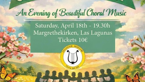 Forårskoncert i Margrethekirken med kor, strygekvartet og klaver under ledelse af Delyth Bressington. Entré €10.